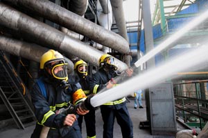 公司黨委書記、董事長(zhǎng)張衛(wèi)民,黨委副書記、總經(jīng)理李清菊,副總經(jīng)理焦旺盛參加演練并提要求。健康安全環(huán)保部消防隊(duì)、熱電車間抽調(diào)精兵強(qiáng)將參加這次突發(fā)事件應(yīng)急預(yù)案實(shí)戰(zhàn)演練。