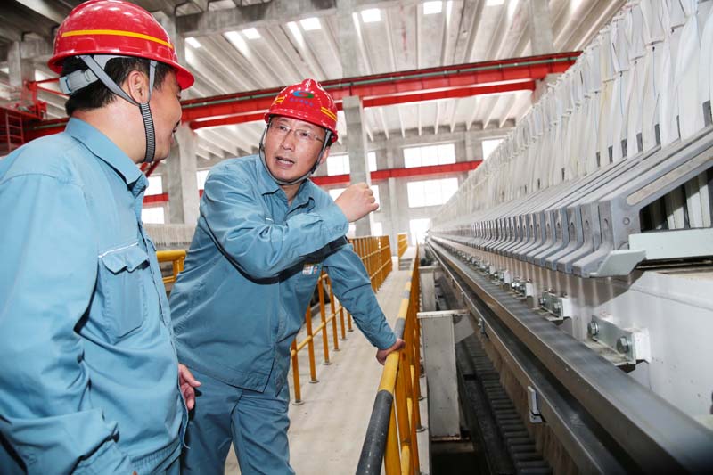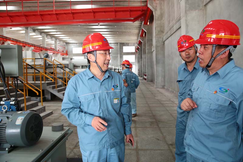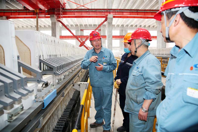 5月16日上午,公司黨委書記、董事長張衛(wèi)民,黨委副書記、總經(jīng)理李清菊,黨委委員、副總經(jīng)理黃建華,黨委委員、副總經(jīng)理焦旺盛等一行到渣處理車間指導(dǎo)工作。
