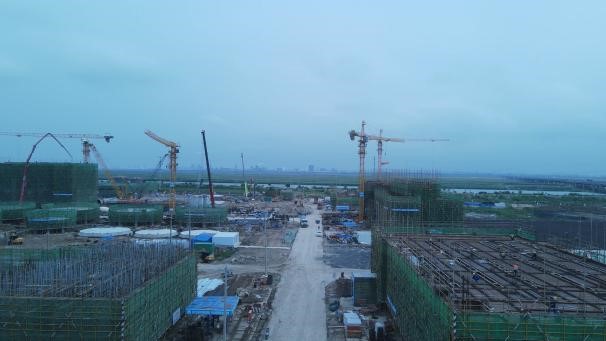 ⑵聯(lián)堿二標(biāo)段611鹽硝車間破樁完成;523結(jié)晶工段框架6~10軸一層梁驗收完成;614真空制鹽循環(huán)水站外排水池土方回填;562聯(lián)堿循環(huán)水站框架西側(cè)池壁驗收完成,水池破樁;524干銨工段7~12軸一層模板支撐架搭設(shè);503變電所3外架搭設(shè),內(nèi)架開始搭設(shè);525包裝及儲運8-16軸梁板模板鋪設(shè)、1-7軸內(nèi)架搭設(shè);506機柜間1一層梁板柱梯澆筑;601變電所2外架搭設(shè)。