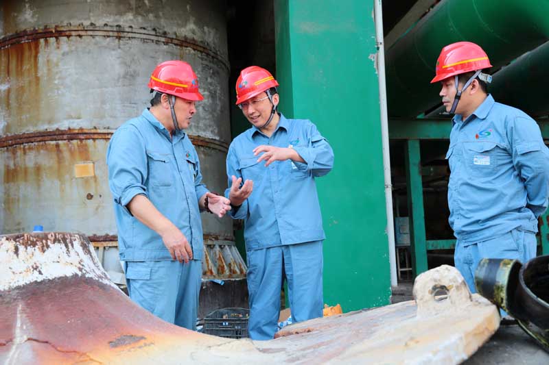 在重堿車間現(xiàn)場,張衛(wèi)民囑咐車間負責人,在高溫時節(jié)不僅要抓好生產(chǎn)運行,更要注意酷暑天氣下安全管理和員工的身體健康。