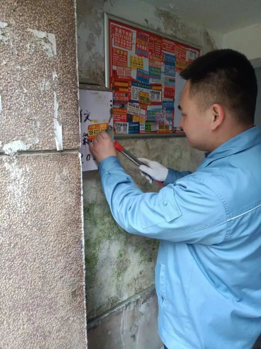 生活中,隨處可見的小廣告成為社區(qū)的“牛皮蘚”,很大程度上影響了社區(qū)的美觀。而氣化中心的青年職工們,化身“墻面清理大師”,前往堿廠生活區(qū)的路口、樓道清理一處處小廣告。他們心靈手巧、嚴(yán)謹(jǐn)細(xì)致,不放過每一個角落。青年員工們拿起鏟子,親手揭下一處處廣告條,收獲滿滿成就感的同時,也為堿廠生活區(qū)和居民們帶來了整潔清爽的生活氛圍。