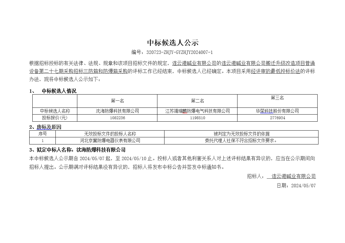 搬遷升級改造項(xiàng)目普通設(shè)備第二十七期采購招標(biāo)三防箱和防爆箱采購中標(biāo)候選人公示