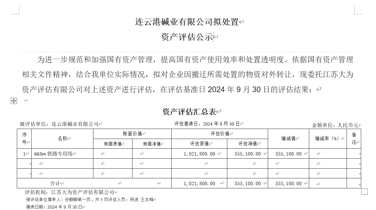 連云港堿業(yè)有限公司鐵路專用線資產(chǎn)評(píng)估公示